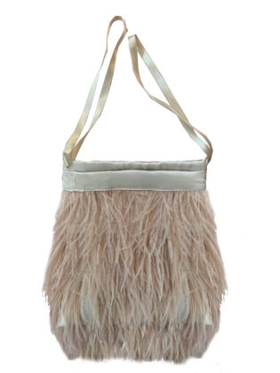 Mini bag invernali in raso rivestite in piume nelle varianti colore nero Black Swan, cipria, Coco, e fucsia, Flamingo.