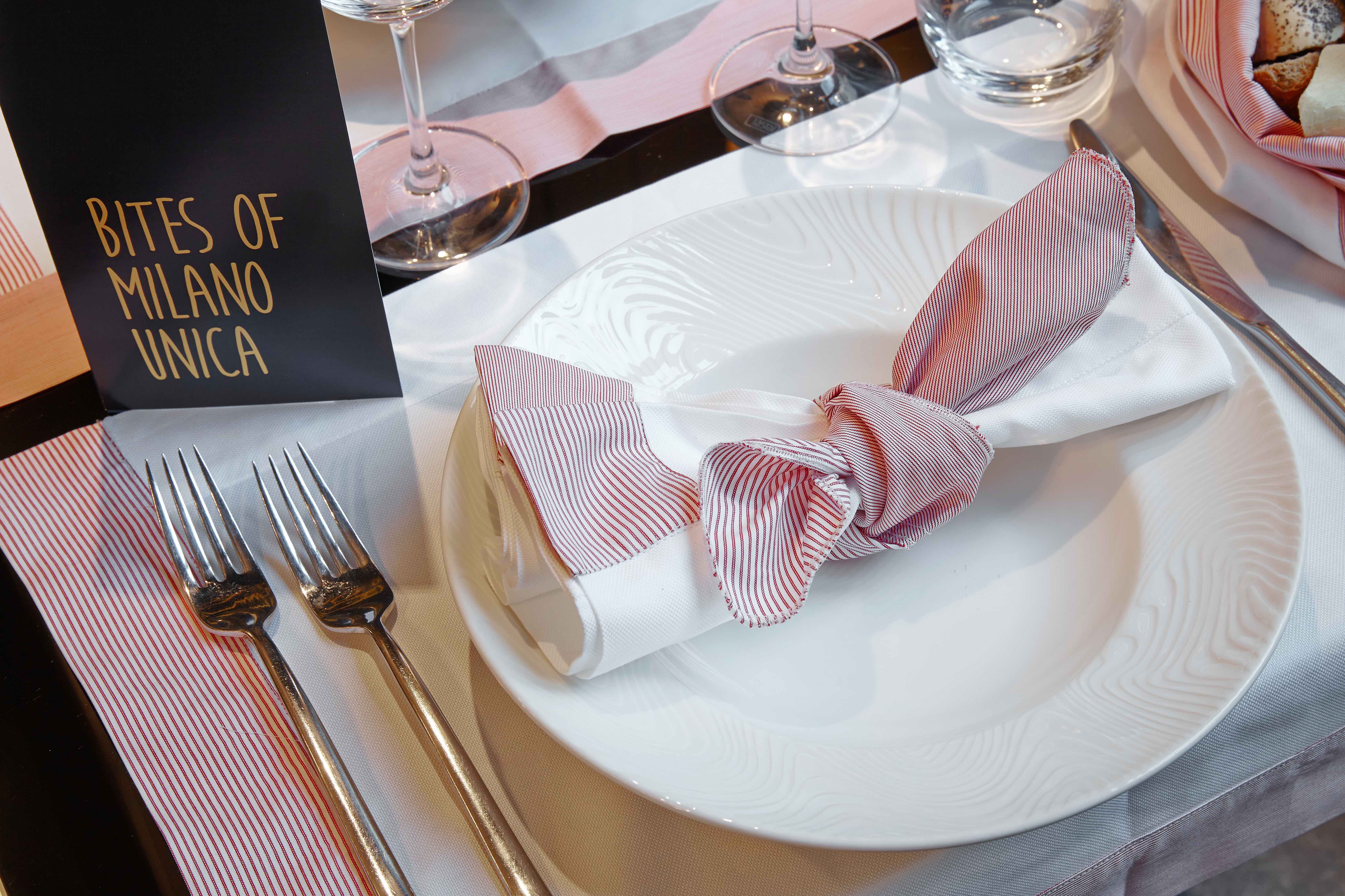T’a Milano Store & Bistrot è stato selezionato tra i 4 luoghi scelti da Milano Unica per ospitare la nuova iniziativa «Bites of Milano Unica». Un vero e proprio «fuorisalone» dei tessuti che Milano Unica – la più importante fiera internazionale dei tessuti in scena dal 9 all’11 febbraio a Fieramilanocity – ha voluto per portare la fiera nel cuore della città. La mise en place appositamente creata al T’a Milano Store & Bistrot è realizzata in tessuti di cotone provenienti dal mondo della camiceria maschile. La contrapposizione della tinta unita con diversi tipi di rigato conferisce carattere ed una elegante modernità. L’iniziativa, con la quale T’a Milano conferma la sua vocazione al design e alla moda, proseguirà per tutto il mese di febbraio.