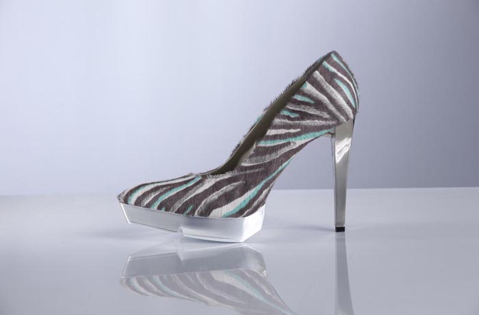 Roberto Botticelli punta sull’animalier per le sue nuove proposte. Aggressiva e seducente, la decolletè in cavallino maculato con tacco e plateau sezionato in metallo si abbina alla borsa a tracolla dall’identica fantasia. Il mocassino, invece, è realizzato in cavallino spazzolato a “boules” in metallo brunito.